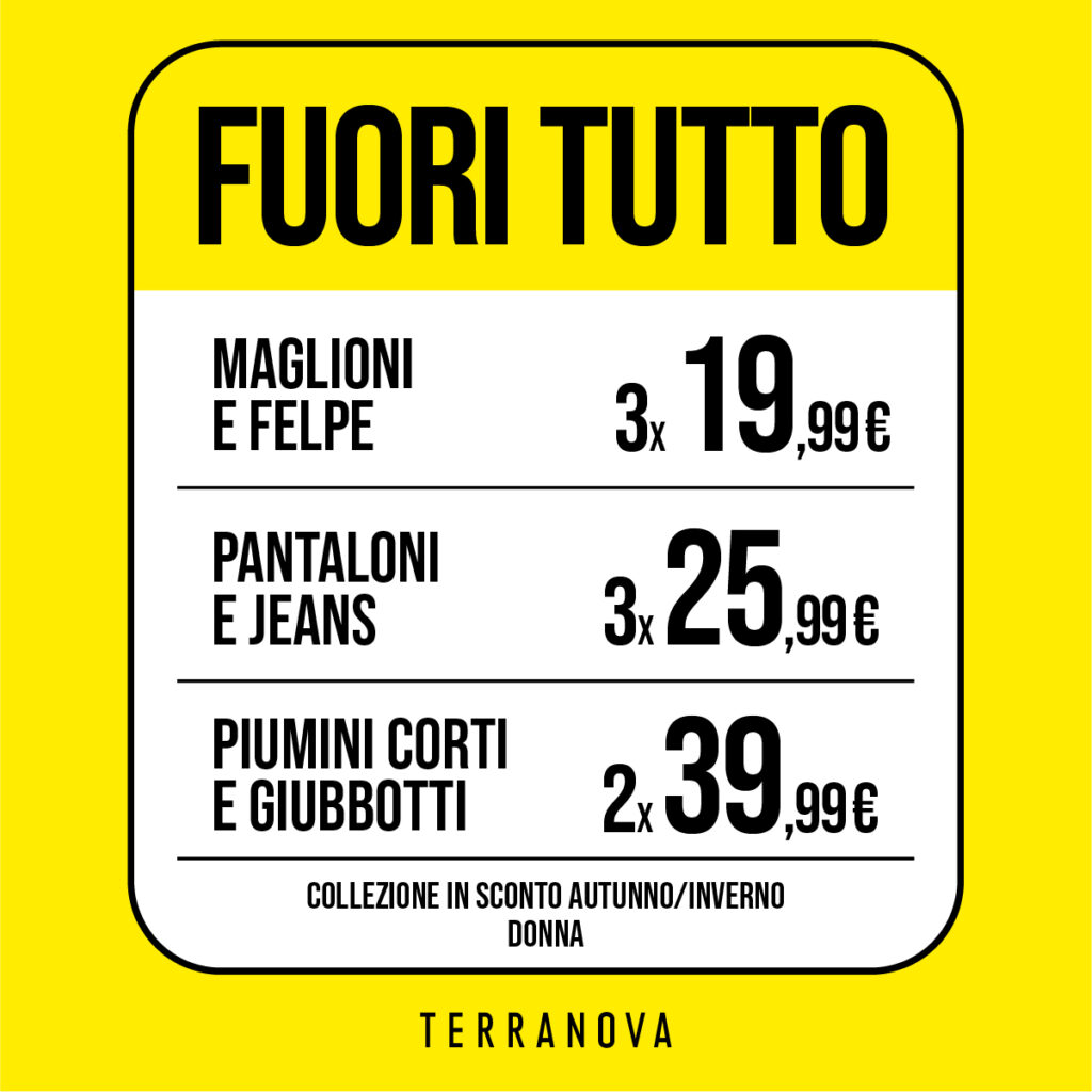 Terranova Abbigliamento Terranova e’ un marchio di moda italiano,facile da vivere, indossare e comprare. Collocazione: Shopping CenterLotto: 15Telefono: 0174-529530Email: — Orari: Lun-Dom 09:30-20:00 Seguici su